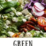It’s a nutrient-packed bowl meal made with grains, greens, vegetables, and a green goddess dressing, known for its vibrant color and herby flavor.