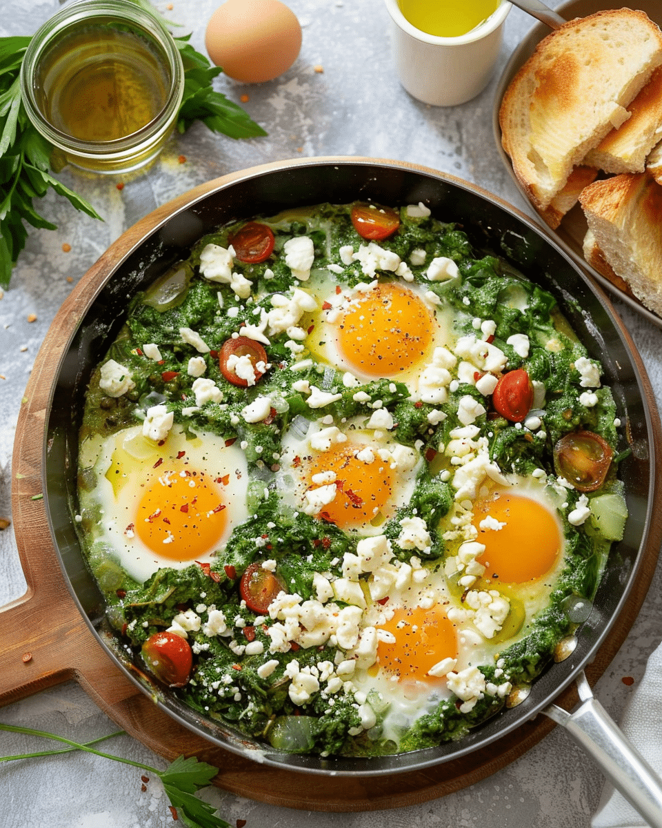 Green Shakshuka is a fresh, wholesome take on a classic. It’s packed with nutrient-dense greens, herbs, and spices that provide a clean, earthy flavor. The eggs are gently poached in the green mixture, resulting in a creamy, rich center that balances the brightness of the greens. It’s vegetarian, gluten-free, and endlessly adaptable. Plus, it looks stunning on the table with its vibrant green hue.