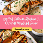 Grilled Salmon Steak with Creamy Mustard Sauce is a restaurant-quality dish featuring smoky, tender grilled salmon topped with a tangy, velvety mustard cream sauce. Perfect for elegant dinners or healthy weeknight meals.