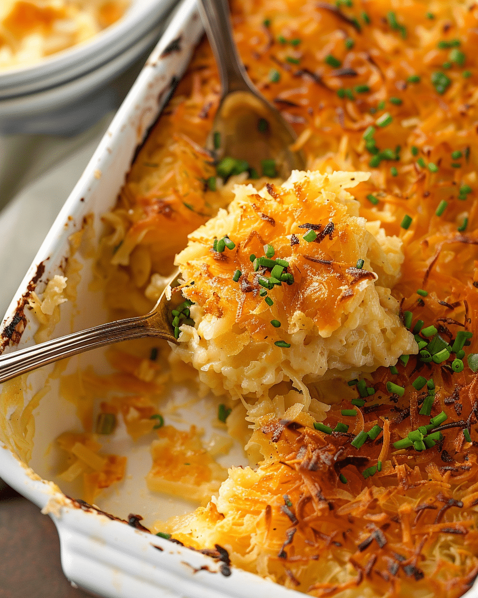 Hash brown casserole is a creamy, cheesy comfort dish made with shredded potatoes, melty cheddar, sour cream, and a savory soup base. Perfect for breakfast, brunch, or dinner, it’s an easy crowd-pleaser for holidays, potlucks, or family meals.