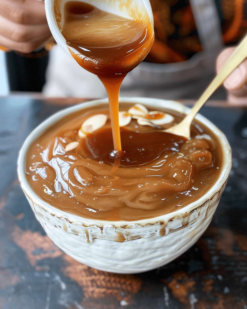 For a thicker sauce, mix a small amount of arrowroot or cornstarch with water and whisk it into the caramel. Simmer for another 1–2 minutes.