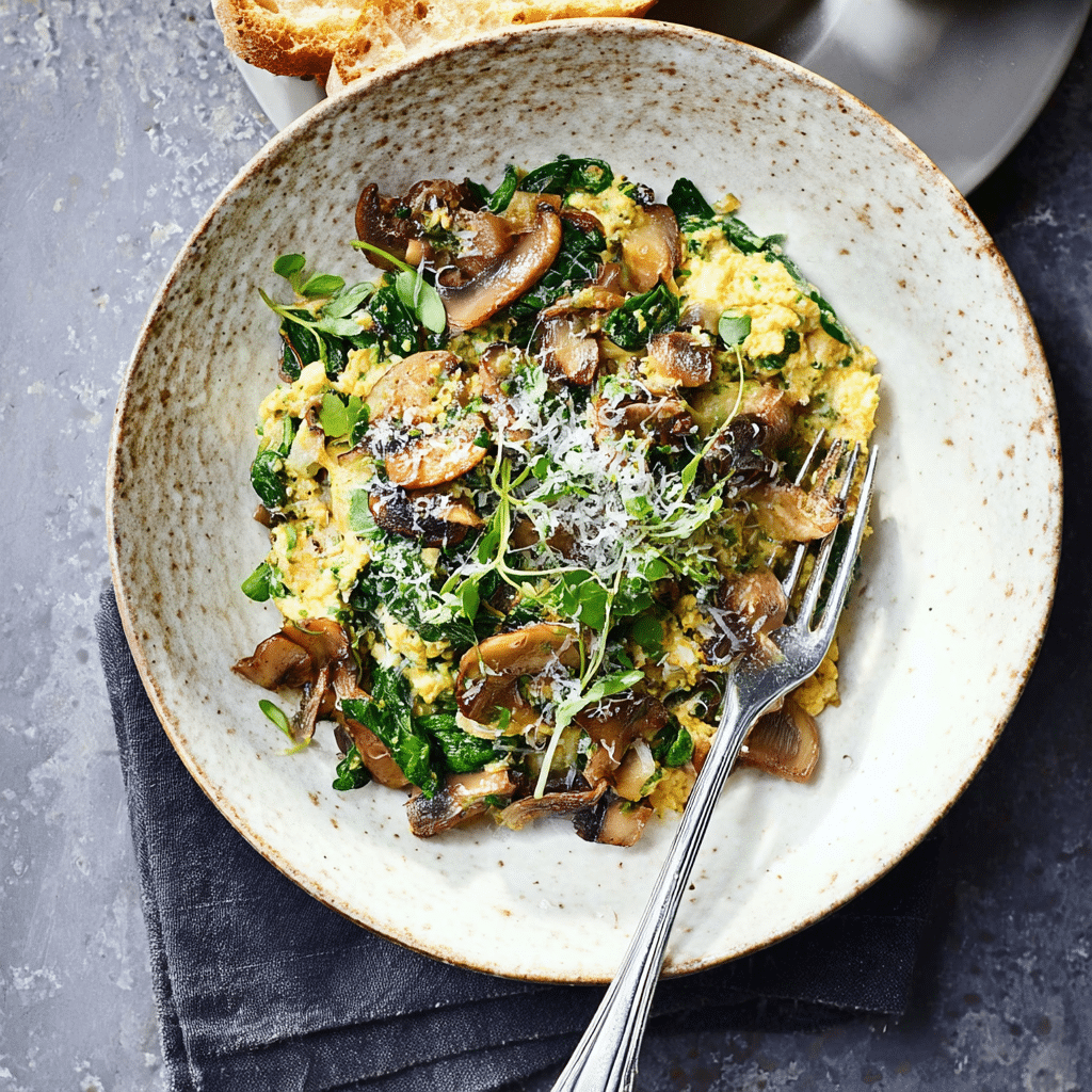 This Healthy Spinach and Mushroom Scramble is a quick, protein-packed breakfast recipe made with fluffy eggs, fresh spinach, and sautéed mushrooms. Ready in just 15 minutes, this easy and nutritious scramble is perfect for busy mornings, low-carb diets, or a wholesome brunch option.