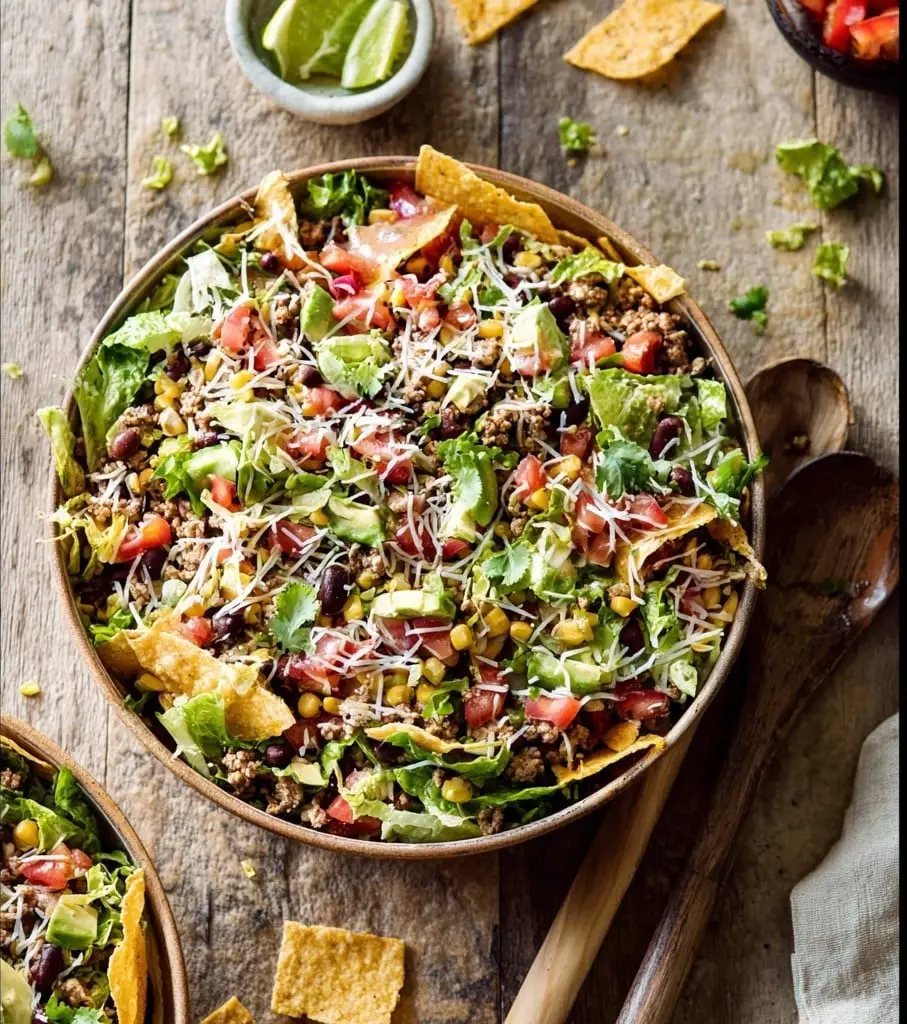 Healthy taco salad is a fresh, wholesome twist on the classic taco salad, made with lean protein, crisp veggies, and a lighter dressing. It’s a satisfying, nutrient-rich meal that’s quick to prepare and perfect for lunch, dinner, or meal prep.