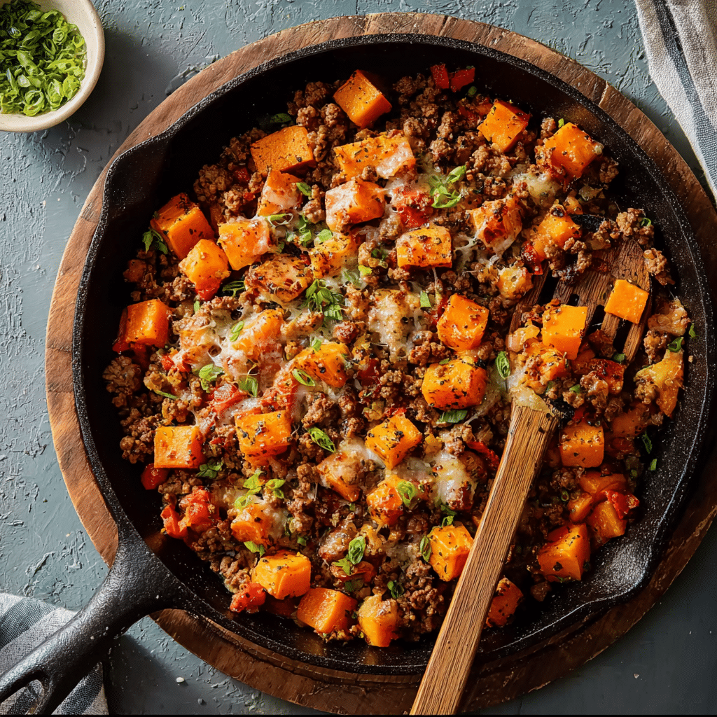 High-Protein Ground Beef & Sweet Potato Skillet is a simple, wholesome, and satisfying meal that delivers great flavor and nutrition in every bite. With its easy preparation and versatility, it’s a go-to recipe for anyone looking for a quick and nourishing dish.