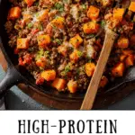 High-Protein Ground Beef & Sweet Potato Skillet is a healthy one-pan meal packed with lean protein, fiber-rich sweet potatoes, and bold spices. This easy skillet recipe is perfect for meal prep, quick dinners, and anyone looking for a balanced, high-protein meal with simple ingredients.