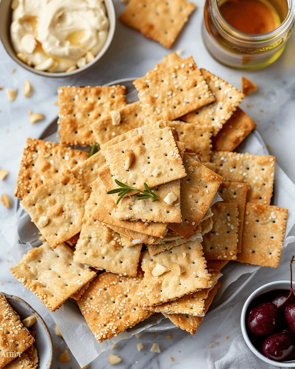 Homemade Artisan Crackers are crisp, golden, and made with just a few simple ingredients. Customizable with herbs, seeds, or spices, these crackers are a wholesome and elegant addition to cheese boards, snacks, or soups.