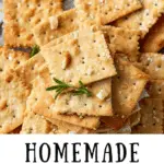 Roll dough as thin as possible for extra crispiness.Use a gluten-free flour blend to make this recipe gluten-free.For cheesy crackers, add 1/4 cup grated Parmesan to the dough.If crackers soften over time, re-crisp in a 300°F oven for 5–7 minutes.Dough can be made ahead and refrigerated for up to 1 day.