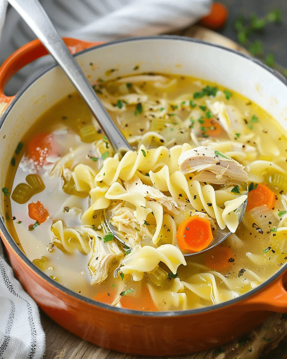 Homemade Chicken Noodle Soup is a cozy, comforting classic made with tender chicken, hearty vegetables, and flavorful broth. Perfect for cold days or when you’re feeling under the weather, this easy recipe brings warmth in every spoonful.
