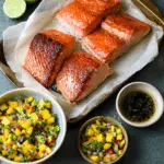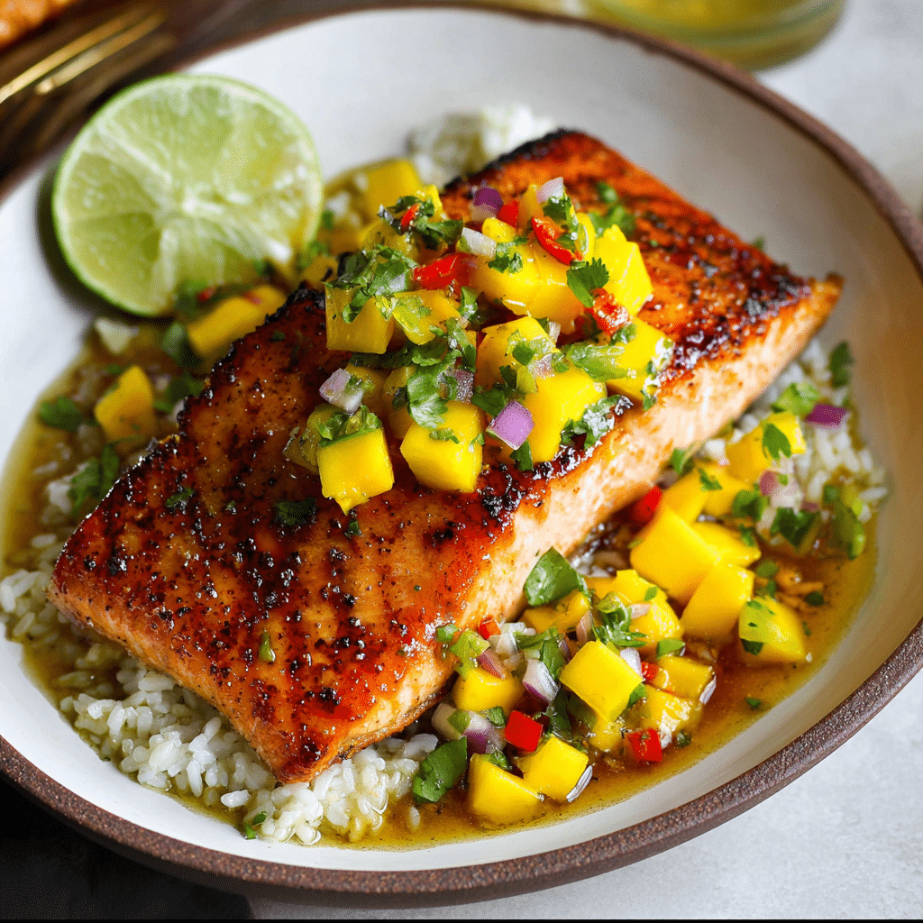 This honey glazed salmon with mango salsa is a fresh and flavorful dish combining tender, caramelized salmon with a sweet and tangy tropical salsa. A quick and healthy recipe perfect for weeknight dinners or special occasions.