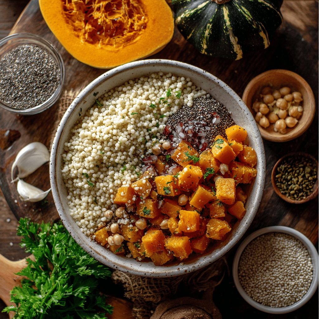 Honeynut Harvest Couscous Salad is a vibrant and wholesome dish made with roasted honeynut squash, fluffy couscous, dried fruits, and a light lemon-honey dressing. This easy couscous salad recipe delivers the perfect balance of sweet, savory, and tangy flavors—ideal for fall meals, meal prep, or healthy side dishes.