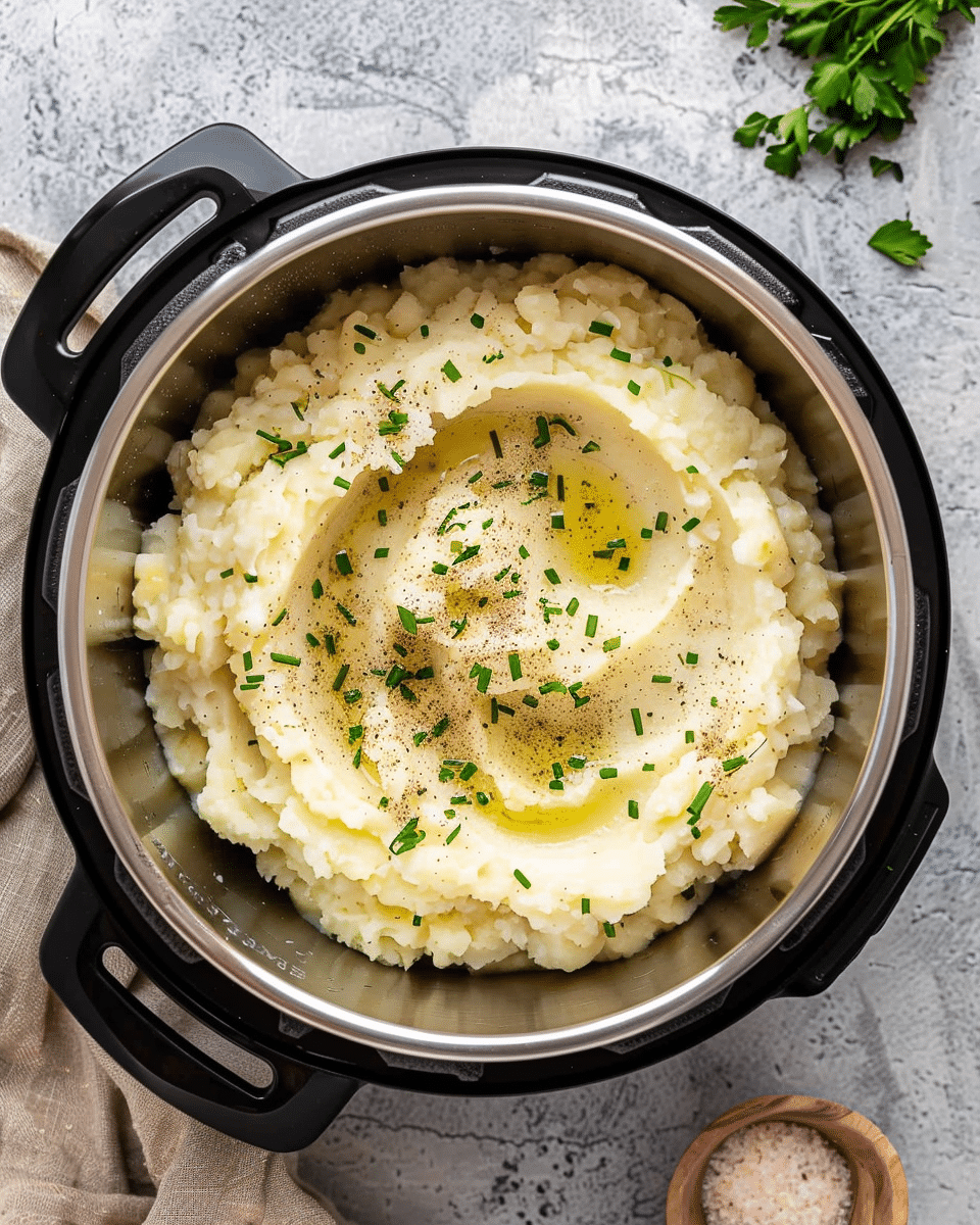 Garlic Mashed Potatoes: Add 2-3 minced garlic cloves to the potatoes before cooking for a garlic-infused flavor. You can also sauté the garlic in butter before adding it to the Instant Pot for a deeper flavor.
