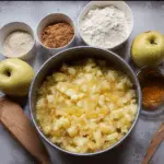 Start by preparing the crumble topping. In a bowl, mix flour, sugar, and butter using your fingers until the mixture resembles coarse crumbs. Set aside.