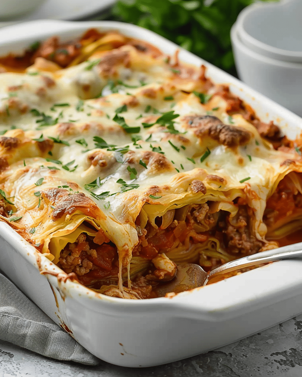 Italian Unstuffed Cabbage Roll Casserole is the perfect comforting meal that brings together all the flavors of classic stuffed cabbage rolls without the hassle. The hearty beef, tender cabbage, and rich tomato sauce, all topped with gooey melted cheese, make this casserole a crowd-pleaser for any occasion. Whether you serve it for dinner with your family or bring it to a potluck, this dish is sure to impress with its comforting, savory flavor. Easy to make and full of flavor, it’s a dish you’ll want to make again and again