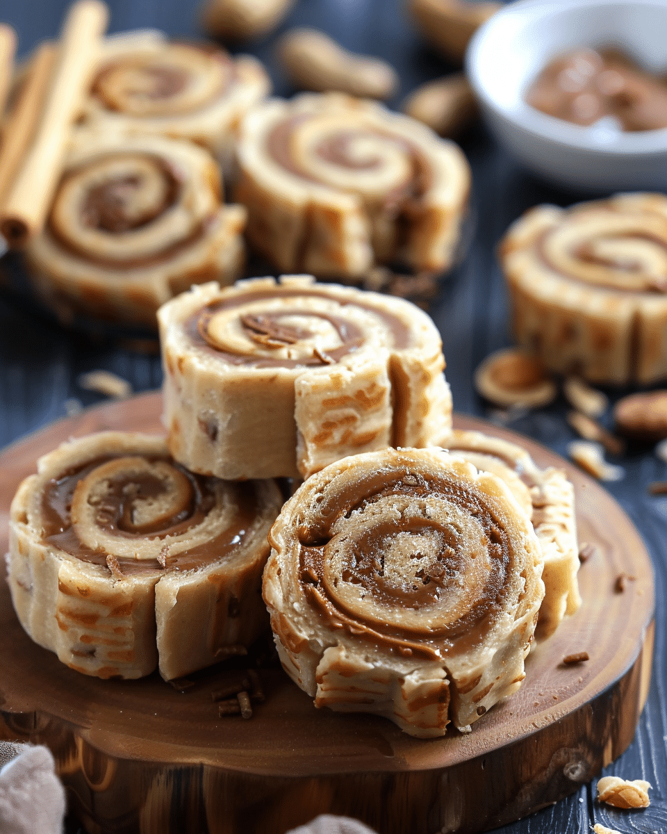 Swap peanut butter with almond or sunflower seed butter for variations.Add sugar-free chocolate chips for extra indulgence.Mix cocoa powder into the dough for a chocolate-peanut butter swirl.Drizzle with melted sugar-free chocolate before serving.Make sure the log is well-chilled before slicing to keep neat pinwheels.