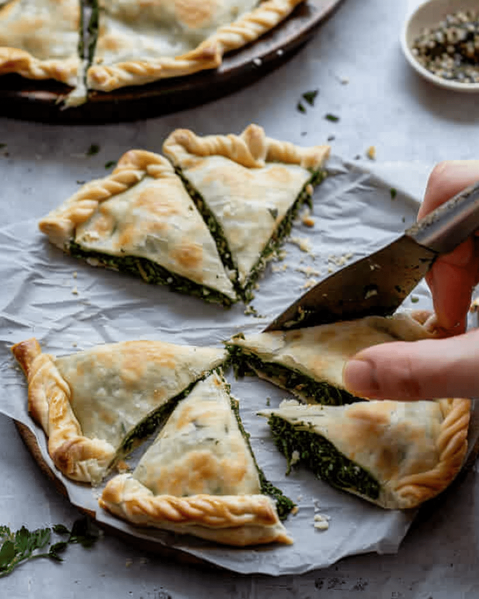 Store leftover spinach pies in an airtight container in the refrigerator for up to 4 days. To reheat, place them in a 350°F (175°C) oven for 5–7 minutes or until warmed through. They can also be frozen after baking—reheat directly from frozen in a 375°F oven for 10–12 minutes. Avoid microwaving to keep the crust from becoming chewy.