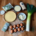shortcrust pastry leeks, thinly sliced olive oil or butter garlic, minced eggs cream or milk goat’s cheese, crumbled grated cheese (optional) fresh thyme or herbs of choice salt black pepper