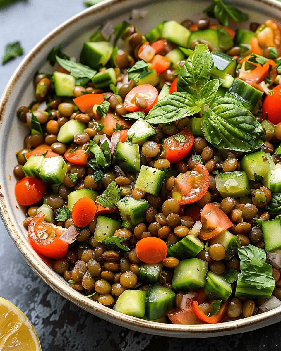 A fresh and protein-packed lentil salad made with tender green or brown lentils, crisp vegetables, fresh herbs, and a zesty lemon-Dijon dressing. Perfect as a side dish or light main, served warm or chilled.