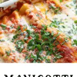 Store leftovers in an airtight container in the refrigerator for up to 4 days. To reheat, cover with foil and warm in a 350°F oven for 15–20 minutes, or microwave individual portions until heated through. Manicotti can also be frozen before baking. Assemble as directed, cover tightly, and freeze for up to 2 months. Thaw overnight in the fridge and bake as instructed.