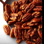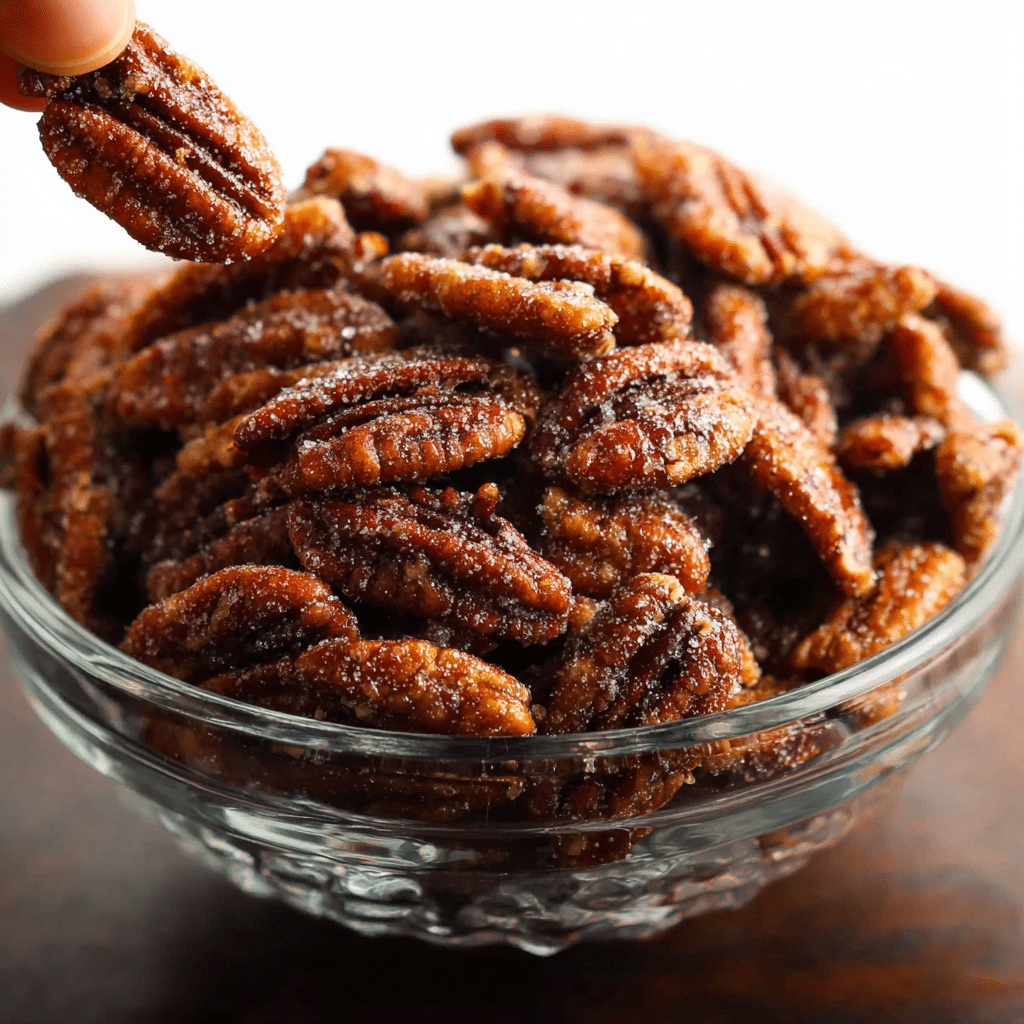 Pecans may feel sticky when hot but crisp up fully once cooled.Stirring halfway prevents burning and ensures even coating.Add a pinch of cayenne for a sweet-and-spicy version.Use two baking sheets if doubling the recipe.