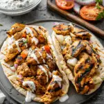 A vibrant and flavorful Mediterranean Chicken Gyro made with marinated grilled chicken, fresh vegetables, and creamy tzatziki sauce wrapped in warm pita bread. Perfect for lunch, dinner, or meal prep.