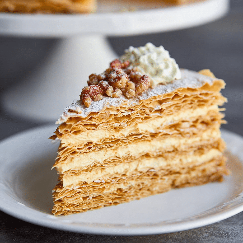 Meringue Napoleon Cake is a light and elegant layered dessert made with crisp meringue layers and a smooth, creamy filling. The airy meringue contrasts beautifully with the rich whipped cream and mascarpone or cream cheese filling, creating a dessert that is both delicate and indulgent. Perfect for holidays, celebrations, and special gatherings, Meringue Napoleon Cake offers a stunning presentation and a delightful balance of textures in every bite