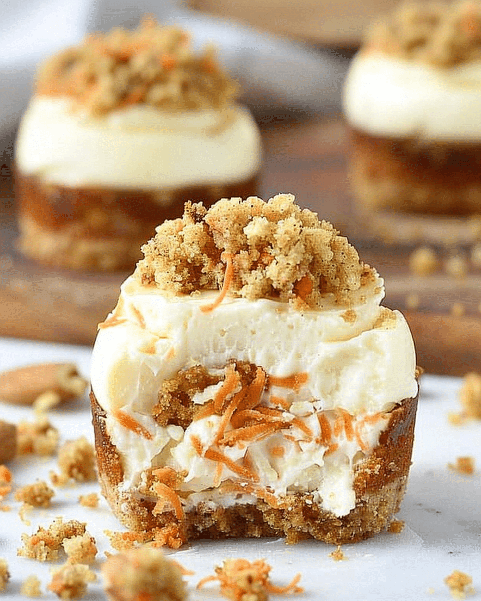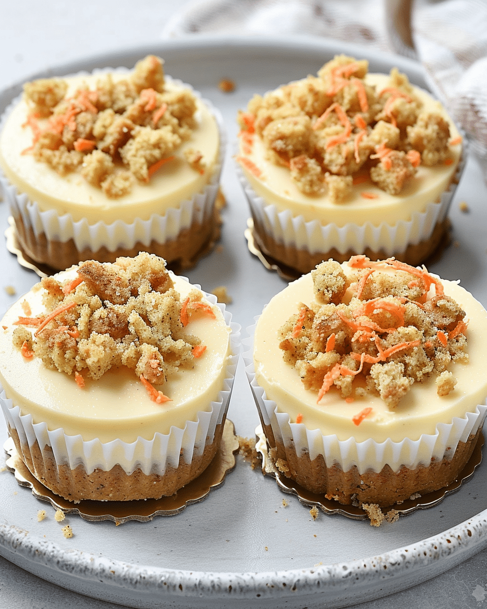 These mini cheesecakes are a fun and elegant twist on two beloved desserts. They’re ideal for portion control, easy to serve, and don’t require slicing like a traditional cake. The combination of carrot cake and cheesecake is a crowd-pleaser, offering the best of both worlds—spiced, moist cake and velvety smooth creaminess. Plus, they’re freezer-friendly and great for making ahead.