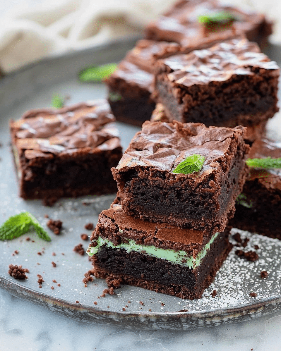 Mint brownies are rich, fudgy chocolate brownies layered with creamy mint frosting and a smooth chocolate ganache. This refreshing twist on a classic dessert is perfect for holidays, parties, or any time you want to impress with bold flavor and beautiful layers.