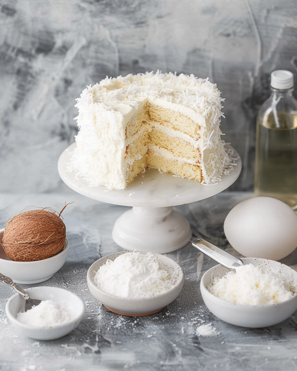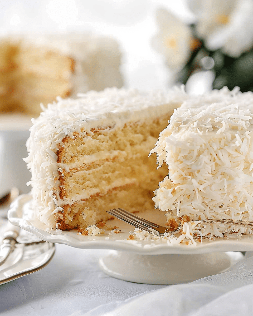 This Moist Coconut Cake is a tender, flavorful dessert with bold coconut flavor, creamy frosting, and a fluffy texture. Ideal for celebrations or everyday indulgence.