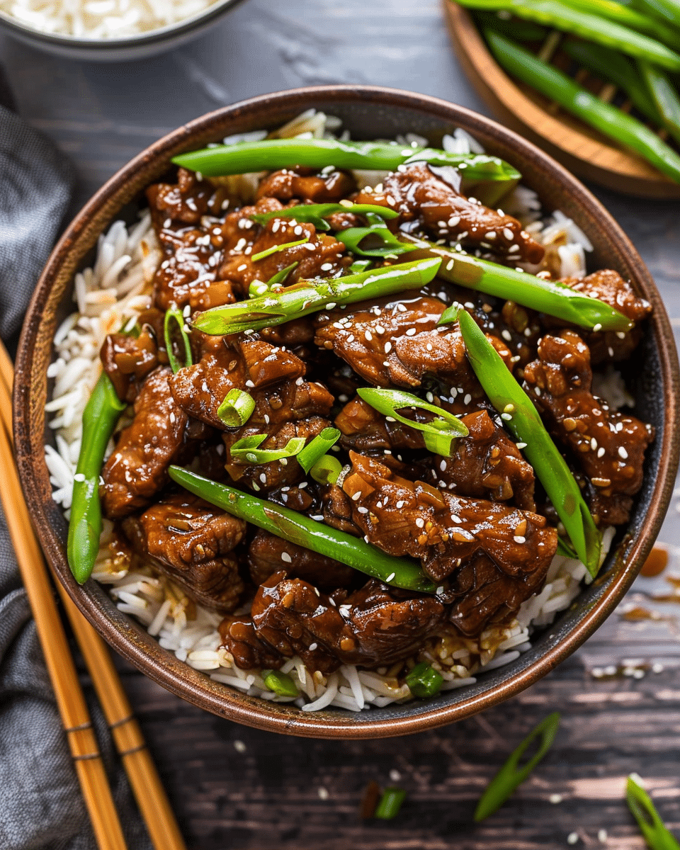 Reheating: Reheat the Mongolian Beef in a skillet over medium heat, adding a splash of water or broth to loosen the sauce. You can also microwave individual portions.