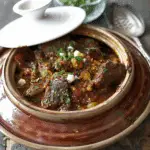 This tagine delivers a beautiful balance of sweet and savory flavors. The lamb becomes incredibly tender as it simmers with spices like cumin, cinnamon, and coriander, while dried fruits add a hint of sweetness. It’s versatile, impressive enough for guests, and pairs wonderfully with couscous, rice, or bread to soak up the luscious sauce.