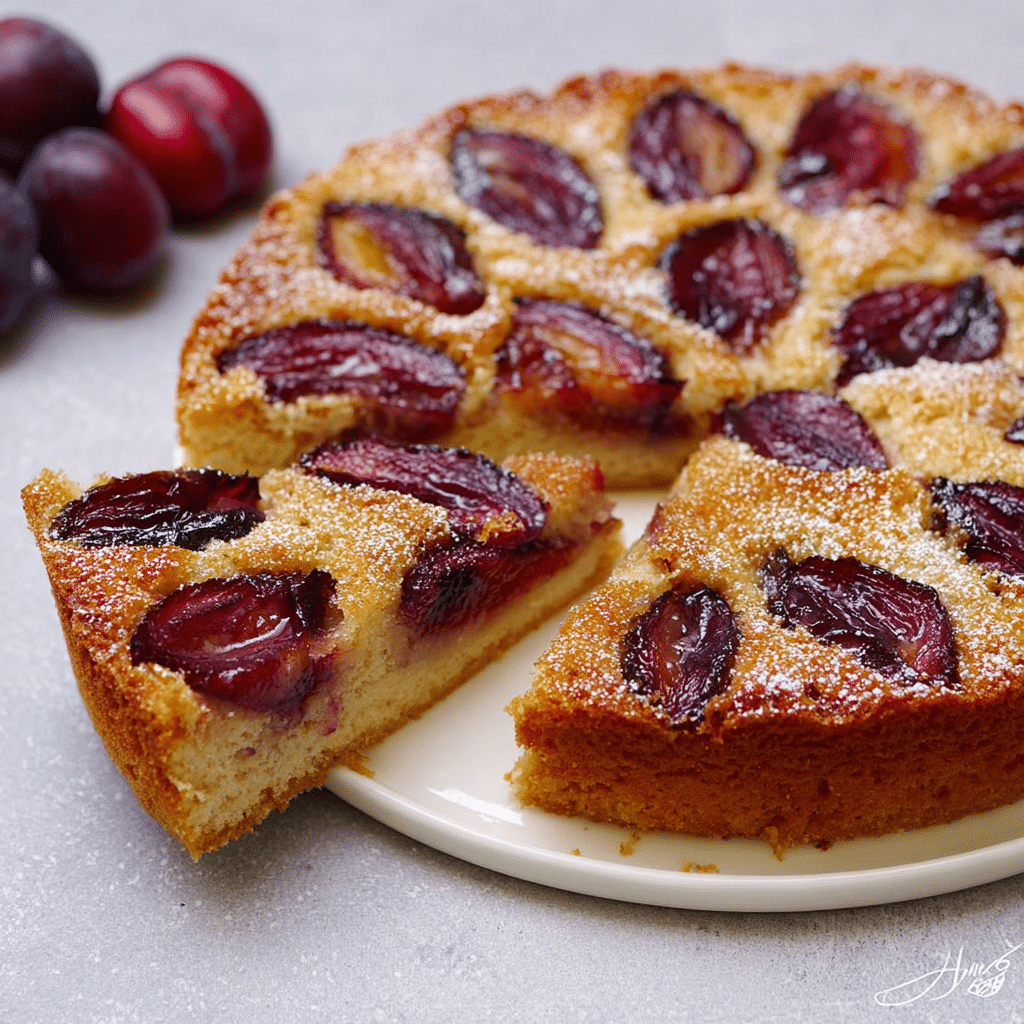 Italian prune plums are traditional and hold their shape beautifully.The batter will be thick — this is normal and helps support the fruit.Add a pinch of nutmeg along with cinnamon for extra warmth.Sprinkle sliced almonds on top before baking for texture.Dust lightly with powdered sugar before serving for an elegant finish.This cake freezes exceptionally well for up to 2 months.
