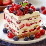A refreshing no-bake dessert made with layers of whipped cream, graham crackers, and fresh summer berries. Perfect for hot days, this icebox cake is light, creamy, and easy to prepare ahead of time.