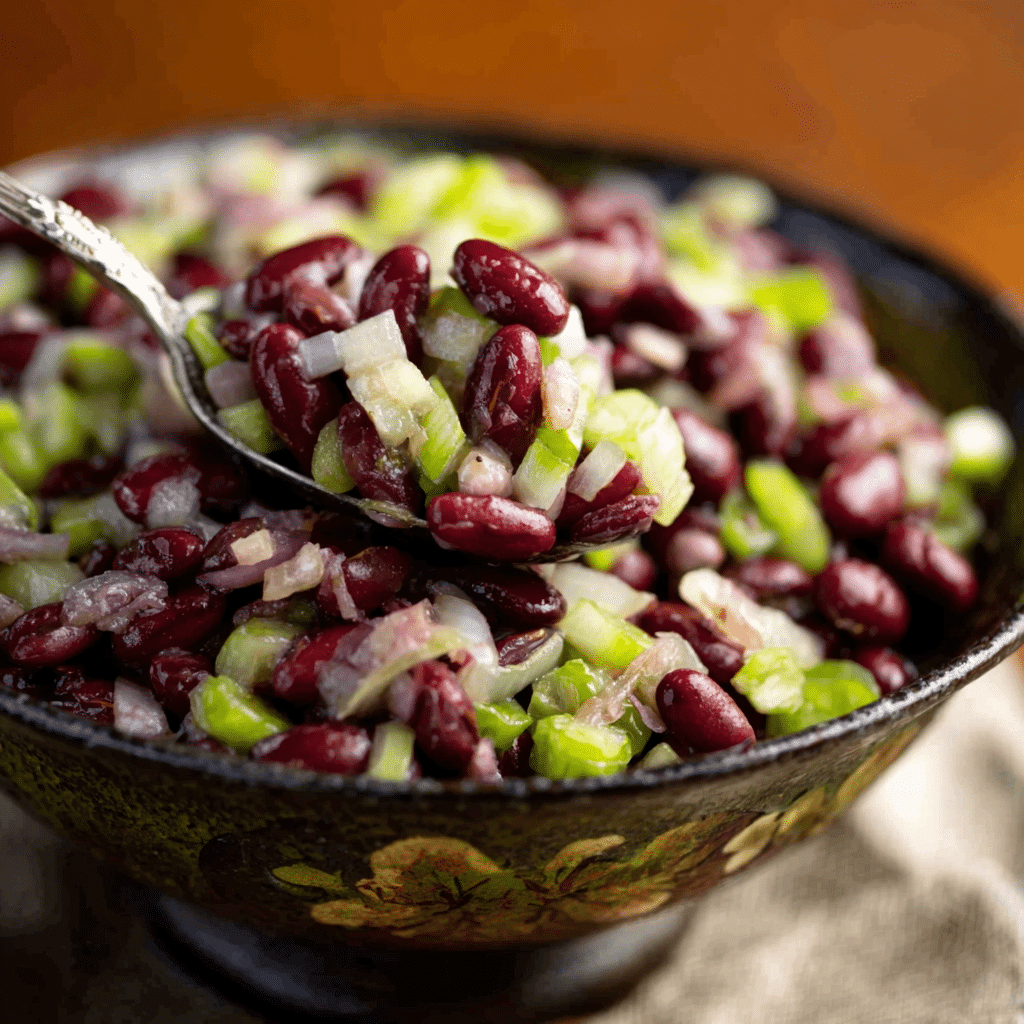 Old-fashioned red bean salad is a vibrant, protein-packed dish made with red kidney beans, crisp vegetables, and a tangy vinaigrette. This chilled salad is a nostalgic favorite, perfect for potlucks, picnics, and easy make-ahead meals.