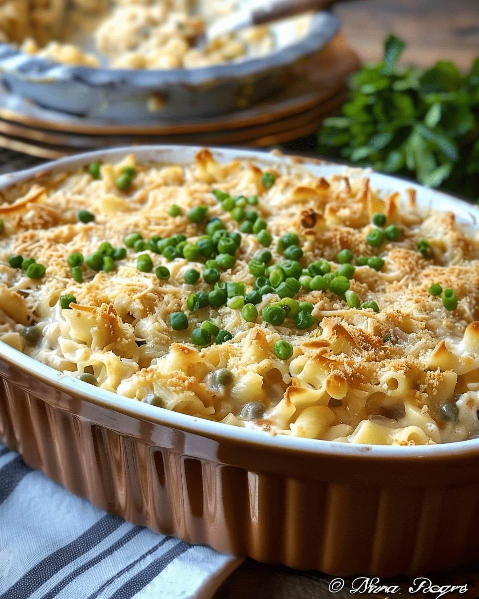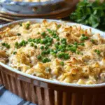 This traditional Tuna Noodle Casserole is the ultimate comfort food — hearty, affordable, and quick to make. It uses pantry staples, can be prepared ahead of time, and appeals to both kids and adults. The combination of creamy sauce, noodles, and crunchy topping delivers great flavor and texture in every bite. It’s also highly customizable based on what you have on hand.
