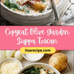 Copycat Olive Garden Zuppa Toscana is a delicious and satisfying homemade version of the classic Italian soup. With savory sausage, tender potatoes, and leafy greens in a creamy broth, it’s perfect for family dinners, meal prep, or any time you’re craving a comforting bowl of soup. Enjoy making this favorite at home!