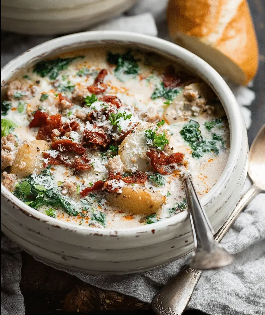 Olive Garden Zuppa Toscana is a creamy, comforting Italian-inspired soup made with savory sausage, tender potatoes, kale, and a rich broth — just like the restaurant favorite.