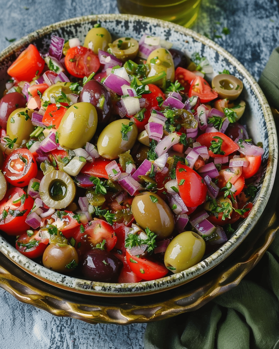 Olive salad is packed with flavor, easy to prepare, and highly versatile. It works equally well as a condiment, side dish, or appetizer. The combination of tangy olives, crunchy vegetables, and herby dressing creates a refreshing balance that enhances almost any meal. Plus, it can be made ahead of time, allowing the flavors to deepen as it sits.
