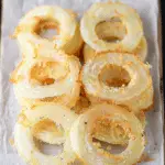 large onions (yellow or sweet) all-purpose flour cornstarch salt black pepper paprika garlic powder buttermilk or milk breadcrumbs or panko oil for frying or cooking spray for baking/air frying