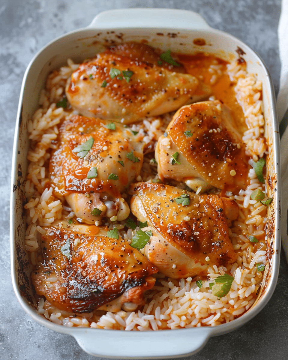 Oven Baked Chicken and Rice is a comforting, one-pan meal that combines tender, juicy chicken with perfectly seasoned, fluffy rice. Everything cooks together in the oven, absorbing rich flavors from savory broth and spices.