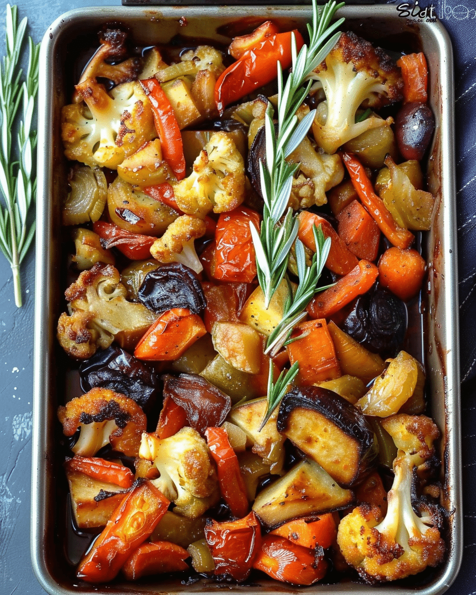 Garnish and serve: Remove the vegetables from the oven and transfer to a serving platter. Garnish with fresh herbs like parsley or thyme for added flavor and color. Serve warm.