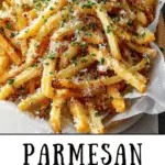 Sprinkle grated parmesan cheese, garlic powder, and chopped parsley over the fries.