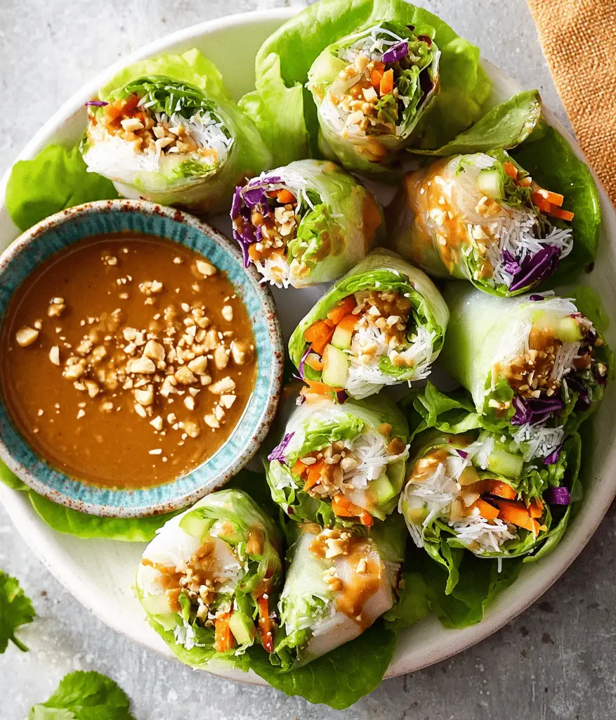 Serve the spring rolls immediately with the peanut sauce on the side.