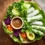 These fresh spring rolls are bright, colorful, and bursting with texture. The natural sweetness of ripe pears balances beautifully with crunchy vegetables and fragrant herbs, while the peanut sauce adds a rich, nutty contrast.