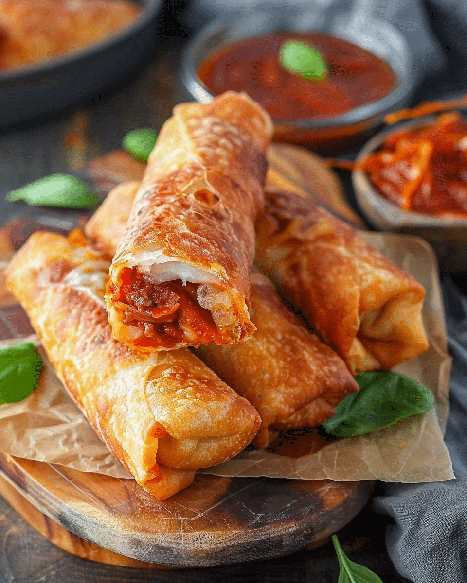Pepperoni spring rolls are the ultimate mash-up of pizza and crispy finger food. With a golden, crunchy wrapper and gooey, cheesy filling, they’re perfect for parties, snacks, or a fun twist on pizza night. Serve with your favorite dipping sauce and watch them disappear fast!