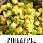 Use fresh, ripe pineapple for the best flavor and texture.Add avocado just before serving to keep it from browning.Adjust the spice level by using more or less jalapeño, or adding red pepper flakes.For a milder salsa, substitute green onion for red onion.
