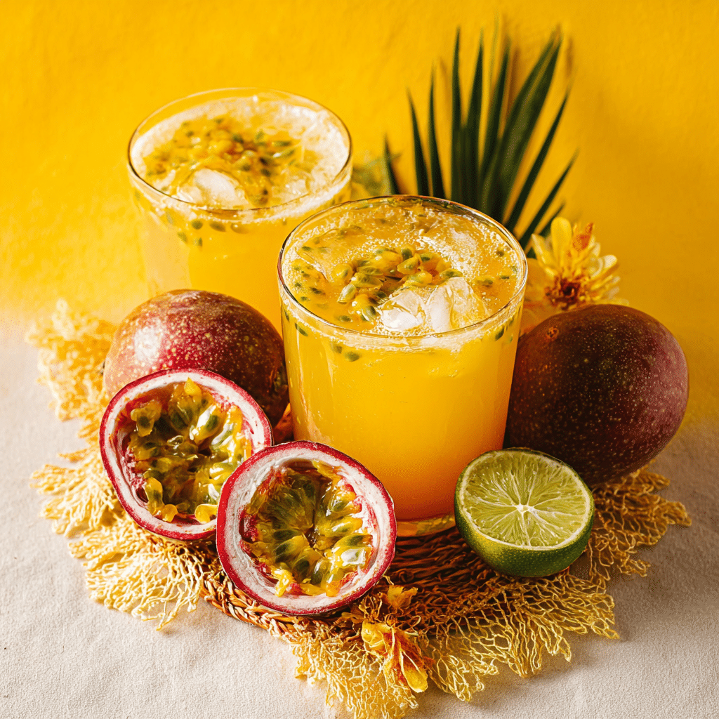 Optional garnish: pineapple slices, mint, passion fruit seeds, or lemon wedges