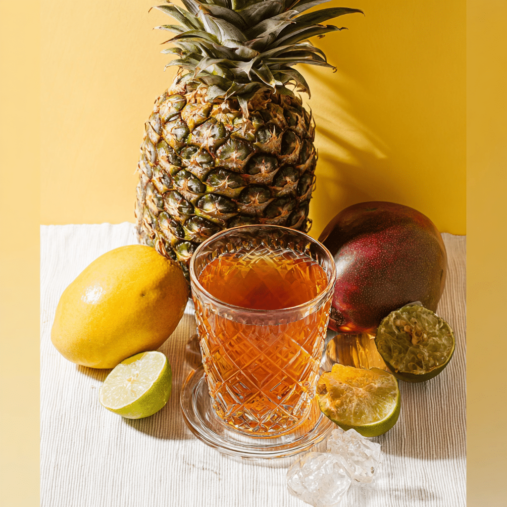 Serve over ice and garnish with pineapple slices, mint, or other desired toppings.