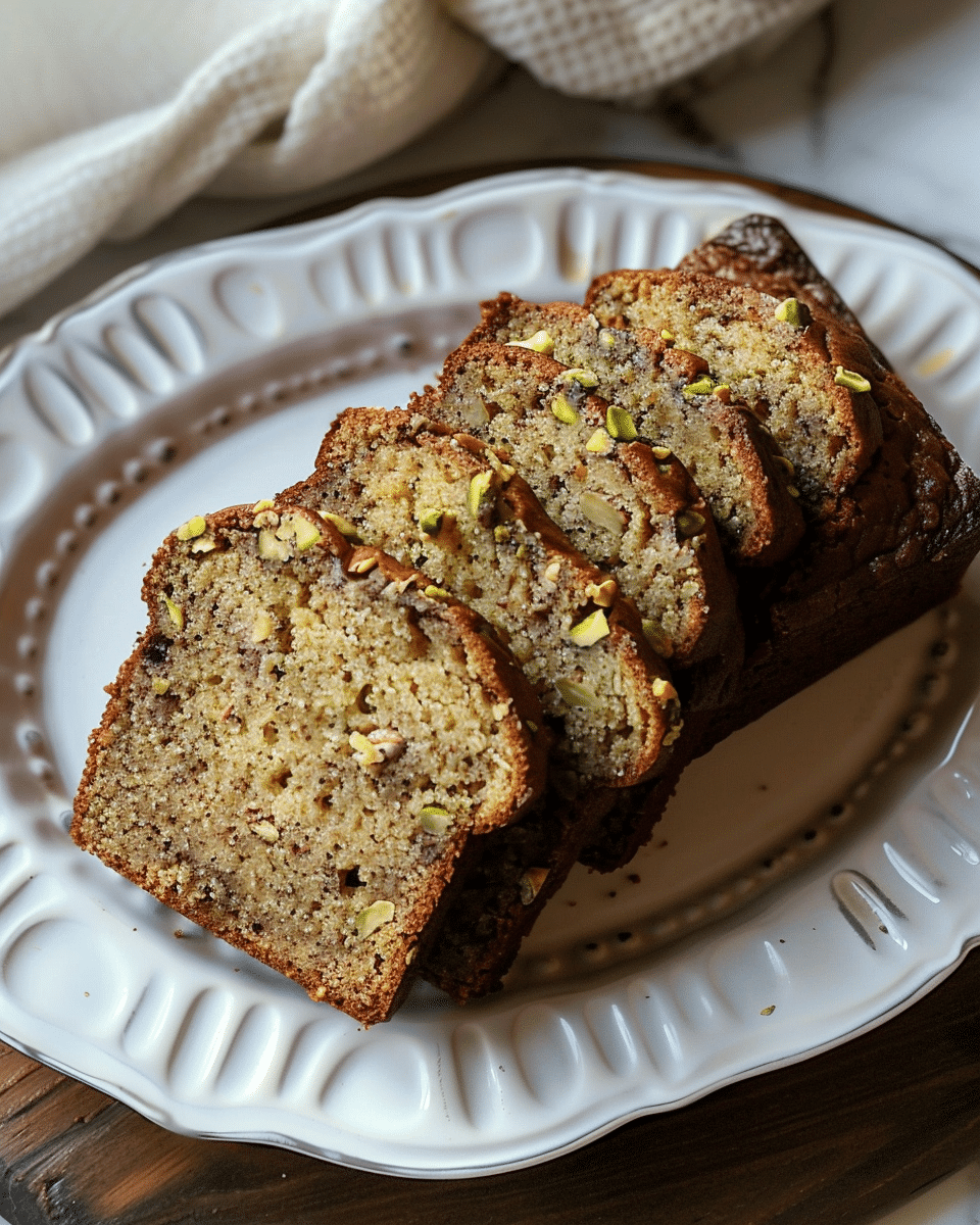 Pistachio Banana Bread is a moist, flavorful twist on classic banana bread, combining the sweetness of ripe bananas with the nutty crunch of pistachios. Perfect for breakfast, snacks, or dessert.
