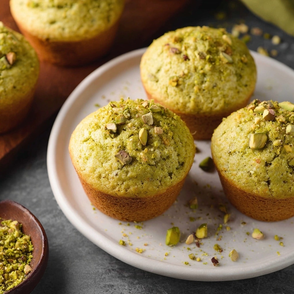Pistachio pudding mix adds color and flavor but is optional.Almond extract can enhance the nutty flavor—use 1/4 tsp in place of or with vanilla.Use gluten-free flour or dairy-free milk to accommodate dietary needs.Don’t overmix to keep muffins soft and fluffy.Make mini muffins by reducing bake time to 10–12 minutes.