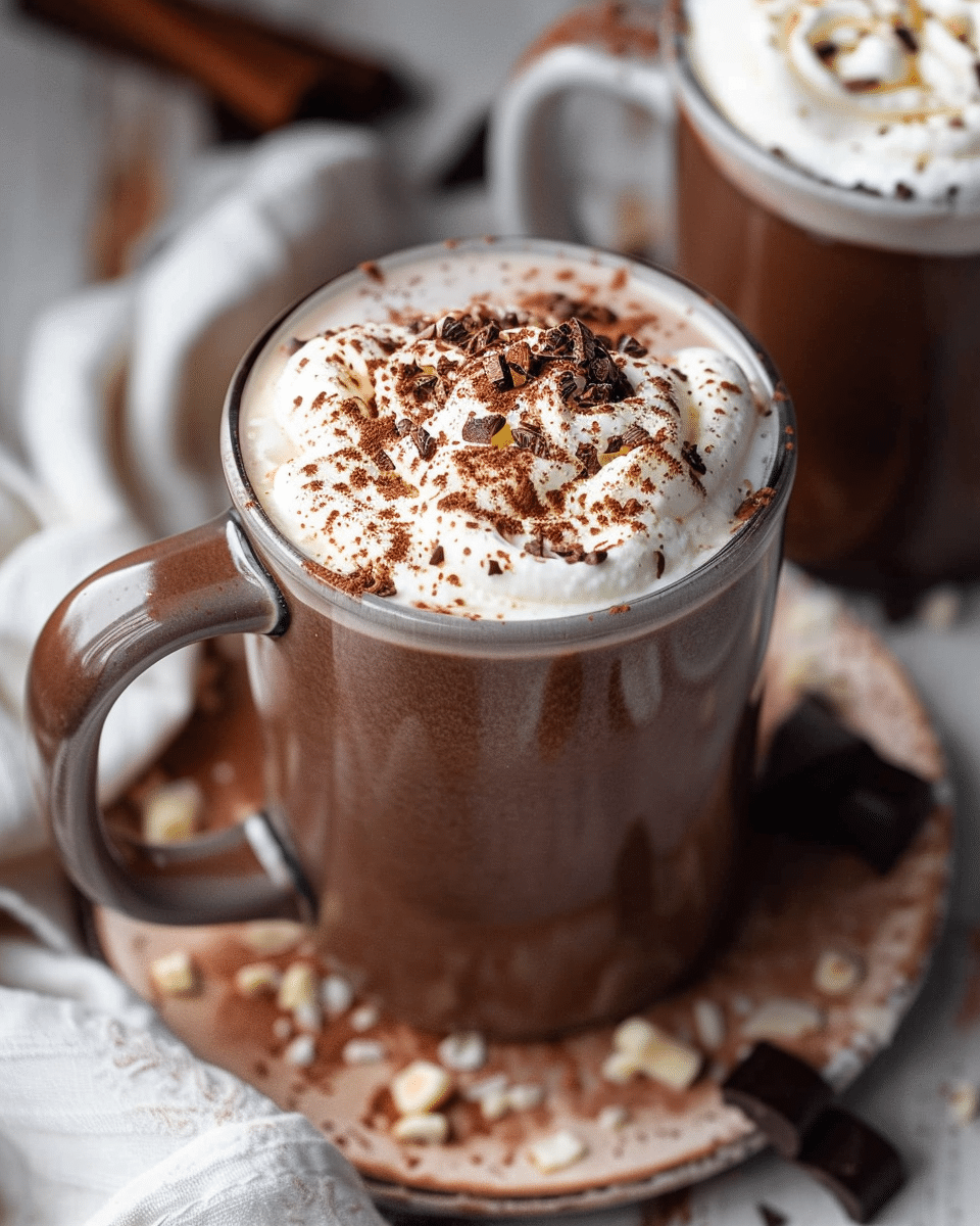 - Optional toppings: whipped cream, shaved dark chocolate, cinnamon, or cacao nibs